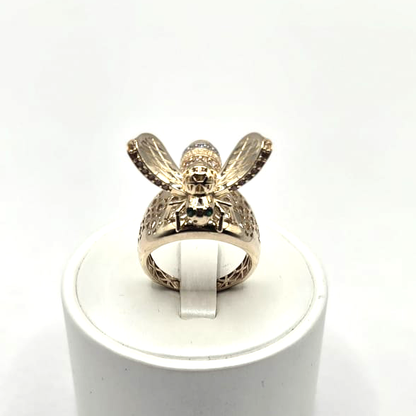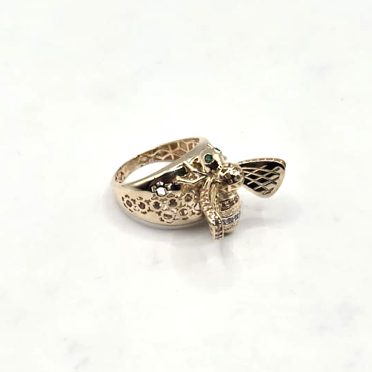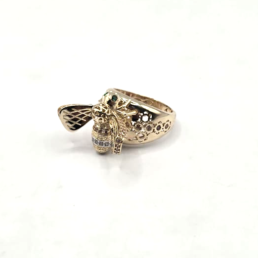 Bee Women's Ring with Circular Pattern Band in 14K Gold and CZ
