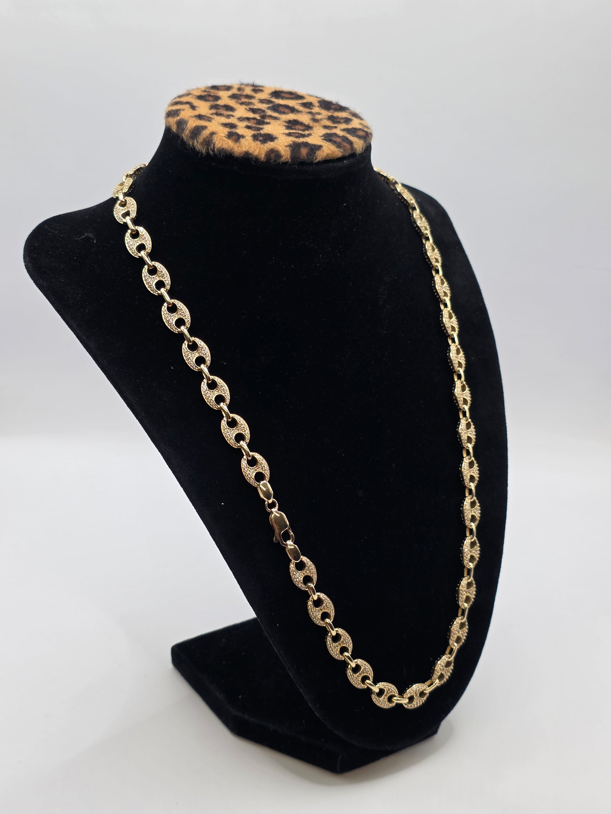This 14K gold semi-solid chain features a finely crafted Eslabón de barco pendant, combining durability with refined artistry. The semi-solid construction ensures lasting strength while maintaining a comfortable, lightweight feel. Ideal for those seeking a meaningful emblem paired with quality craftsmanship, this piece elegantly complements both everyday wear and special occasions.