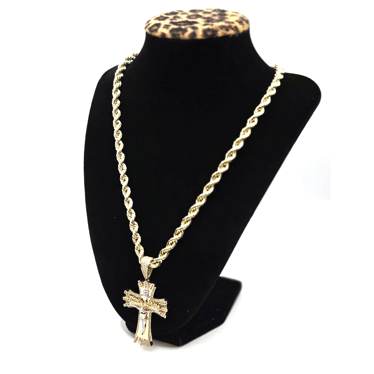 Elevate your collection with this meticulously crafted 14K gold rope chain paired with a classic cross pendant. The durable rope design offers both strength and elegance, while the finely detailed cross pendant adds timeless spiritual significance. Perfectly balanced for everyday wear or special occasions, this piece combines expert craftsmanship with enduring style.