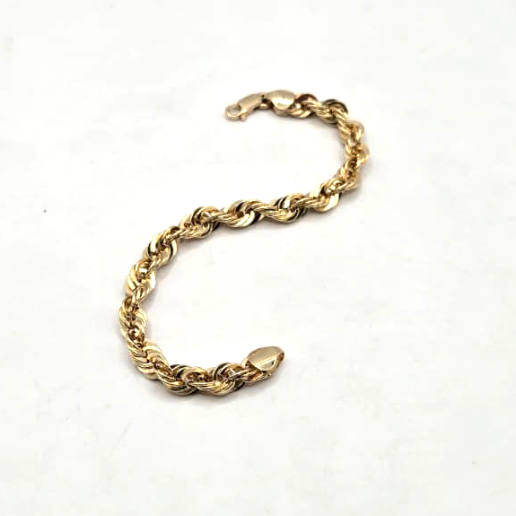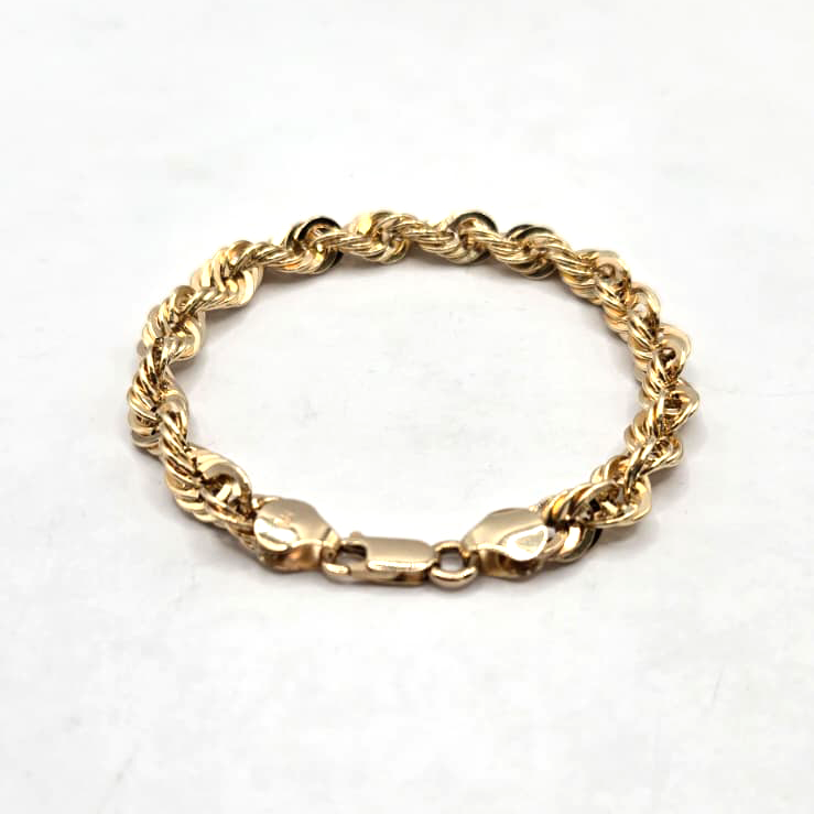 Crafted from 14K gold, this rope link bracelet showcases expertly intertwined links that create a timeless, textured design. Its durable construction ensures longevity, while the elegant shine adds a refined touch to any ensemble. Suitable for both everyday wear and special occasions, this bracelet offers a classic look with a modern edge.